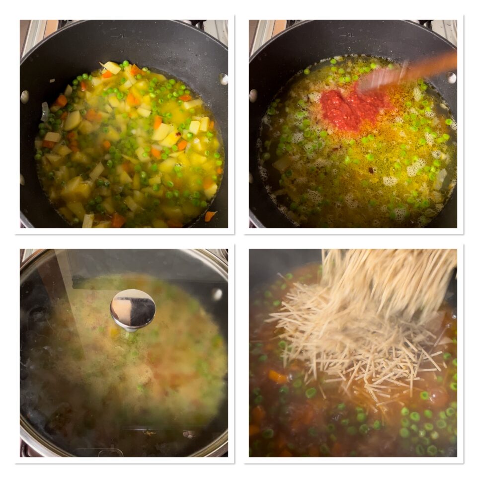 Vi consiglio di preparare solo la quantità di pasta che prevedete di consumare al momento, il brodo di patate e piselli invece, potrà anche essere preparato in anticipo di qualche ora e utilizzato poco prima di andare a tavola.
