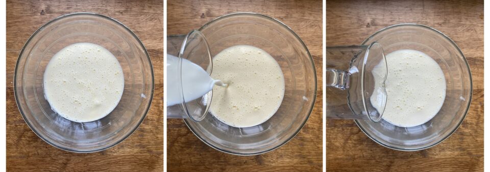 incorporate il tutto con le fruste elettriche fino ad ottenere un composto dalla consistenza schiumosa. Unite poi 120 ml di latte e l’olio di semi.