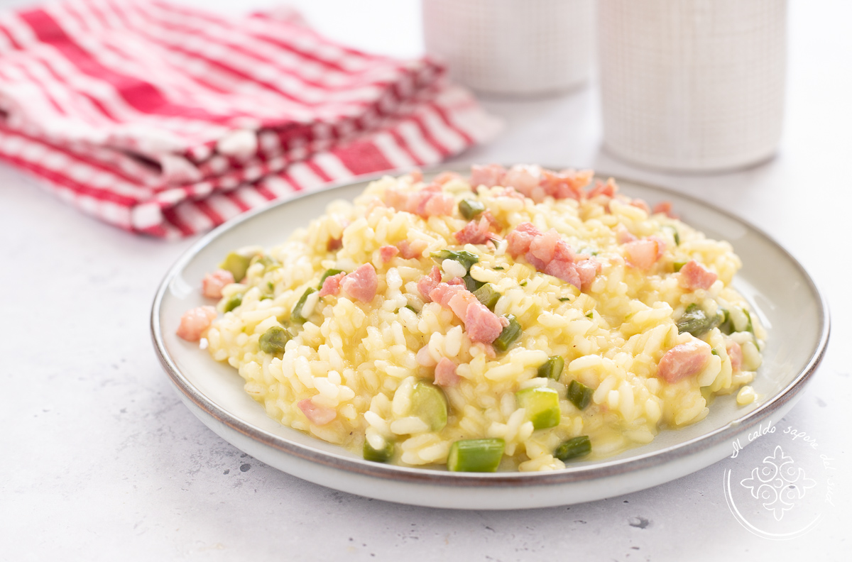 Risotto cremoso con asparagi e pancetta. Arriva la primavera e con questa le gite e le scampagnate fuori porta, e chi resiste alla tentazione di raccogliere gli asparagi selvatici? Adoro la primavera e le belle giornate di sole che l’accompagnano , così appena possibile vado in campagna alla ricerca degli asparagi selvatici di cui vado matta! Qualche settimana fa, complice una bellissima domenica assolata passata in campagna ne ho raccolti un po’ e li ho utilizzati per fare un risotto agli asparagi selvatici e pancetta croccante, cremoso e delizioso. Fare il risotto agli asparagi e pancetta croccante è semplice e si può realizzare anche con gli asparagi coltivati, oggi vi racconto come la mia ricetta, sono sicura che piacerà moltissimo anche a voi!