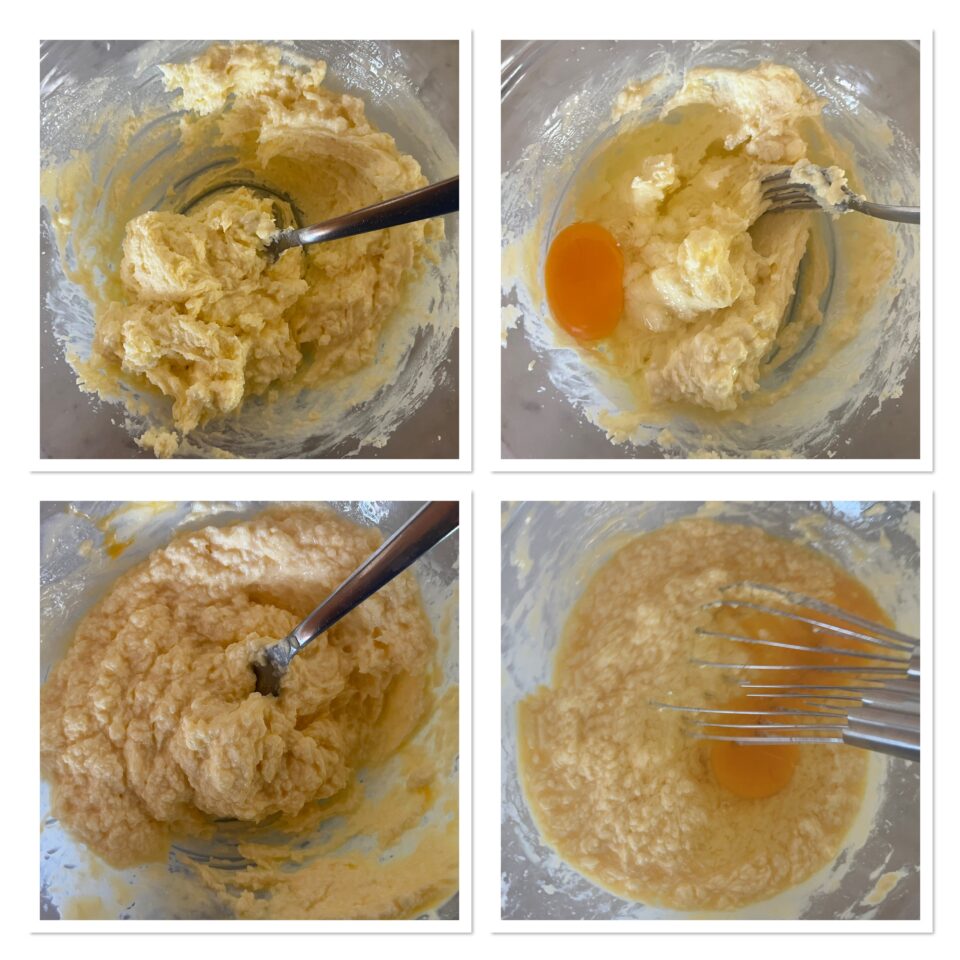 Raccogliete il mascarpone in una ciotola e aggiungete le uova uno per volta, amalgamandole con la frusta.