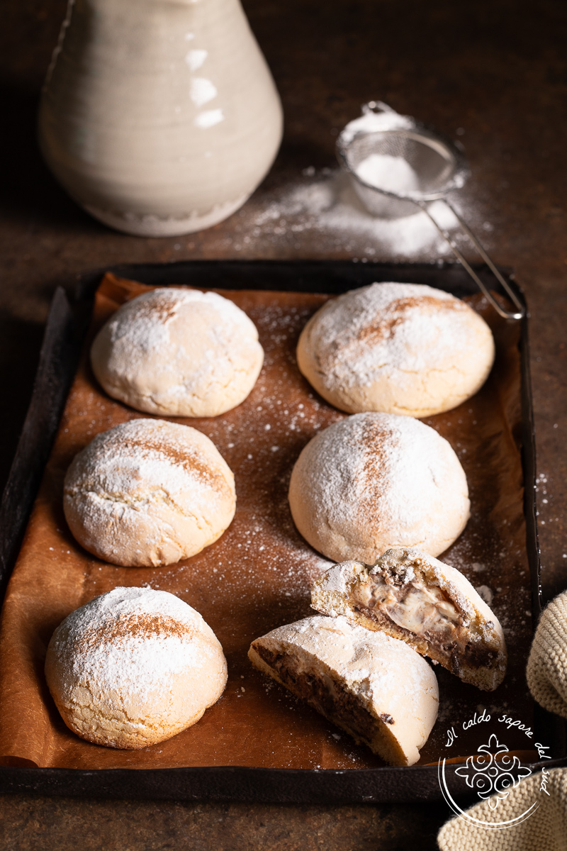 Aiutandovi con entrambe le mani, date dei colpetti facendo saltellare l’impasto in modo da avvolgere il ripieno. Avvolto il ripieno adagiate la spagnolette su una leccarda ricoperta di carta forno, con la chiusura rivolta in basso e fate così per tutte.