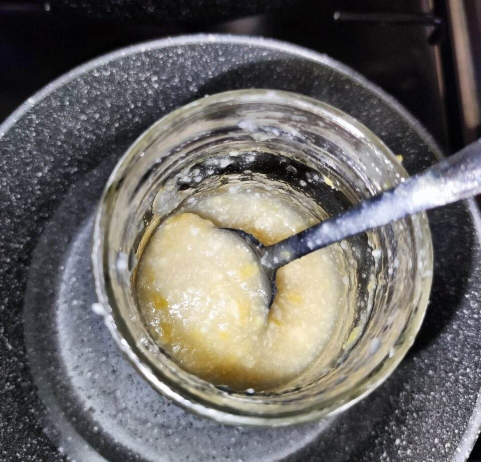 Se vogliamo possiamo fare la stessa operazione anche per l’altra parte di marmellata cristallizzata che abbiamo nel vasetto.