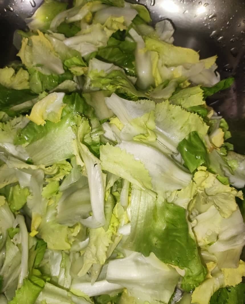 Nel frattempo che l’acqua bolle,laviamo e tagliamo la scarole riccia.