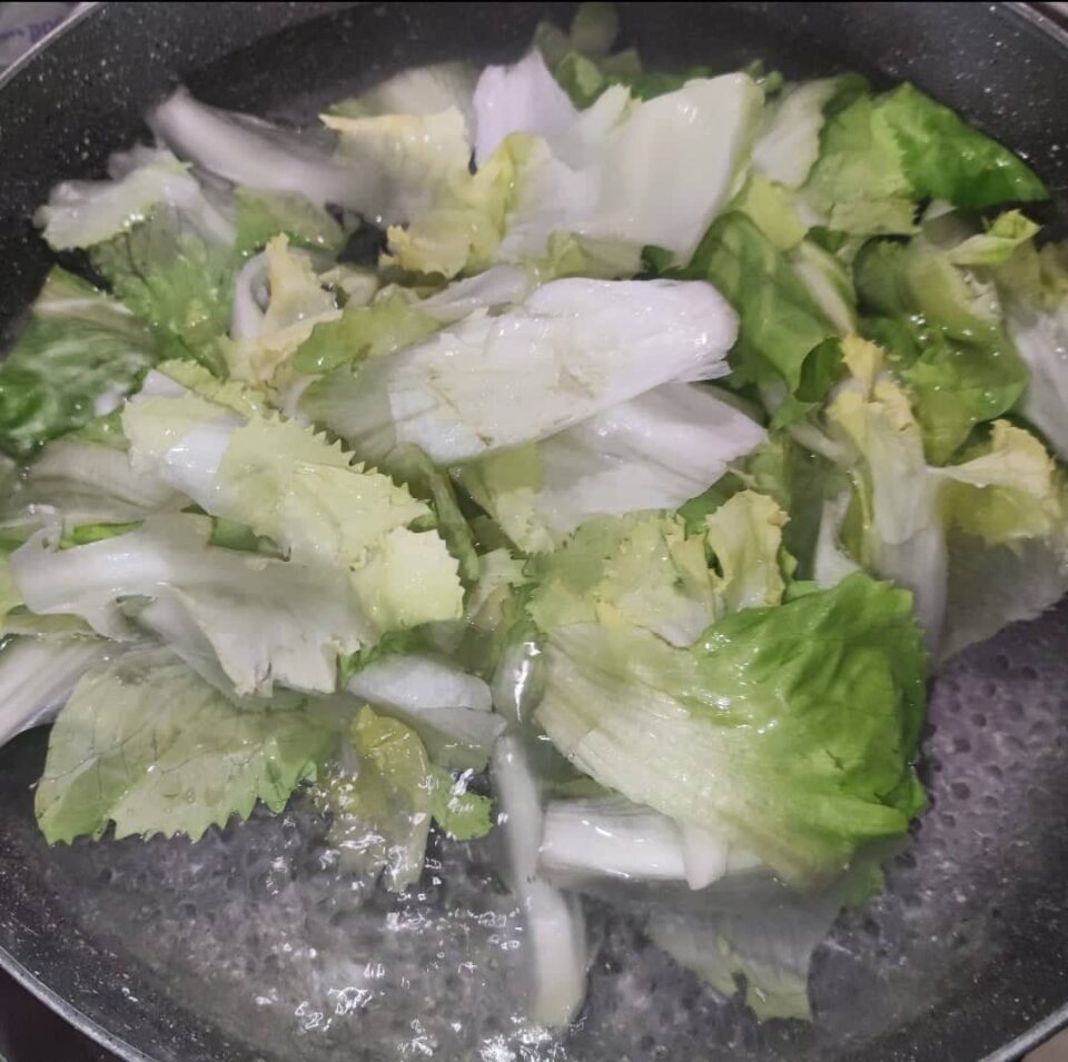 Quando l’acqua bolle caliamo una manciata alla volte la scarola tagliata, non troppe e senza farle uscire dall’acqua.