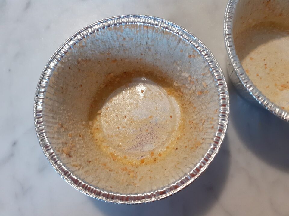 Ungo leggermente i pirottini con un po’ d’olio e li cospargo di pangrattato anche sulle pareti (per farlo basta farli ruotare delicatamente).