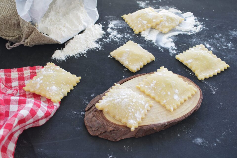 Sin da bambina, quando trascorrevo tantissimo tempo con i miei nonni ed il resto della famiglia, era consuetudine il giovedi’ di ogni settimana preparare la pasta fatta in casa. Una volta i fusilli, un’altra le tagliatelle, un’altra ancora gli gnocchi ,poi le orecchiette e così via. Bisogna ammettere che oggi non ci accontentiamo mai di quello che abbiamo,siamo sempre alla ricerca di qualcosa in più quando prima, invece, solo il fatto di preparare la pasta fatta in casa, era motivo di orgoglio per tutta la famiglia ed un’occasione in più per stare tutti insieme.Detto questo, voglio sottolineare il fatto che i piatti che realizzo oggi sono il frutto dei consigli e dei segreti ricevuti nel tempo soprattutto dalla mia nonna:per questo motivo ne vado fiera ed orgogliosa.Così questa volta vi propongo i ravioli di carne e ricotta,un classico che non muore mai nonostante la sua semplicità.