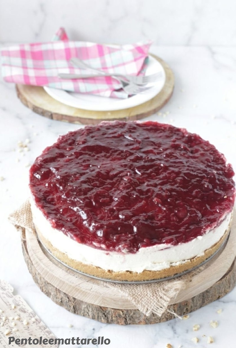 LA VOSTRA BELLISSIMA CHEESECAKE CON MARMELLATA DI FRAGOLE E’ PRONTA! ALLA PROSSIMA RICETTA