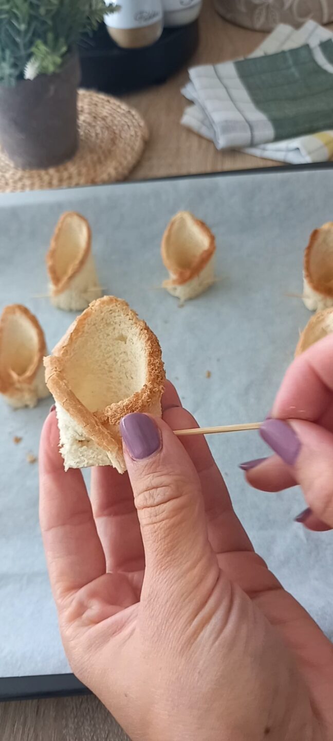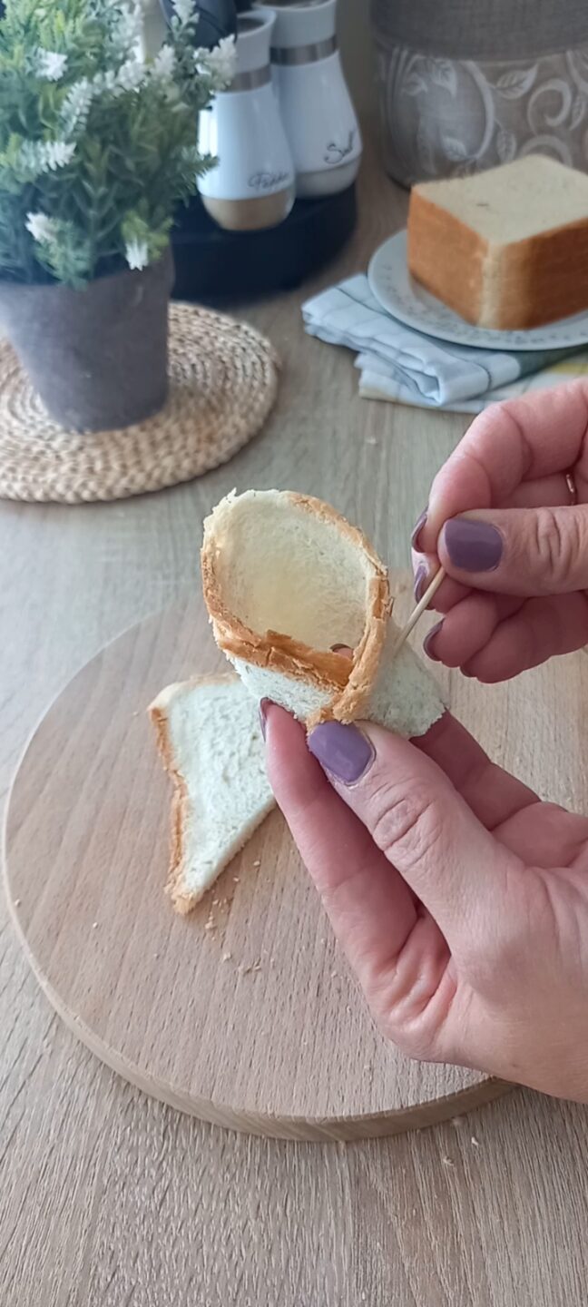 Unite due angoli e fissateli con lo stuzzicadenti.