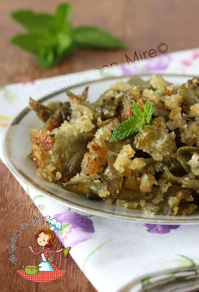 Quando sono ben dorate, aggiungere le mollica con la menta, controllare se sono abbastanza sapide, altrimenti aggiuste di sale, se dovessero asciugarsi troppo aggiungete un goccino d’acqua. Mescolare qualche minuto e sono pronte.