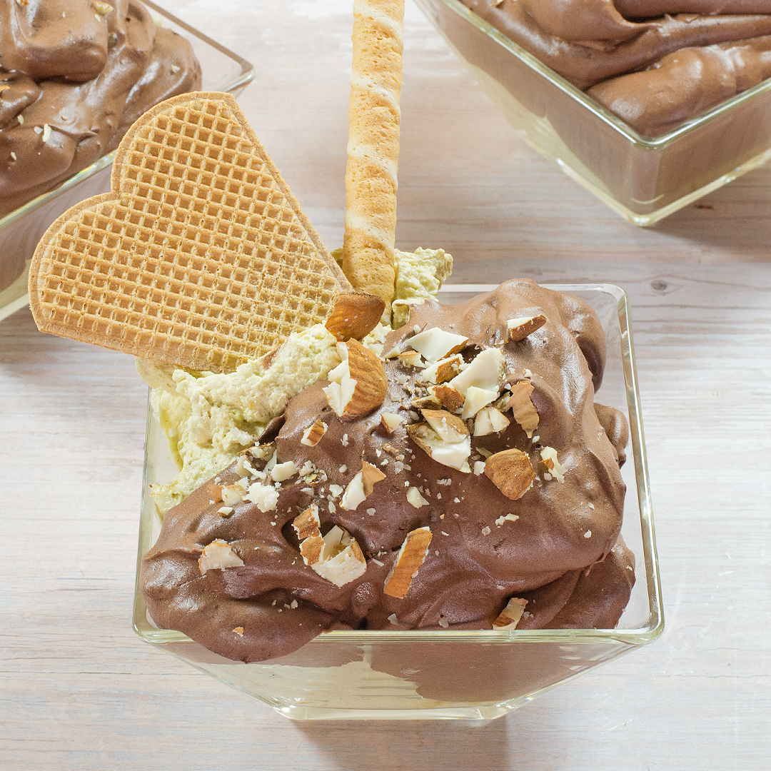 Verrine di Mousse al Cioccolato e Pistacchio con Mandorle: Ricetta
