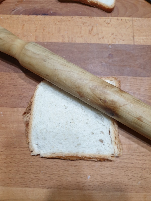 Stendere un po’ con il matterello le fette di pancarré.