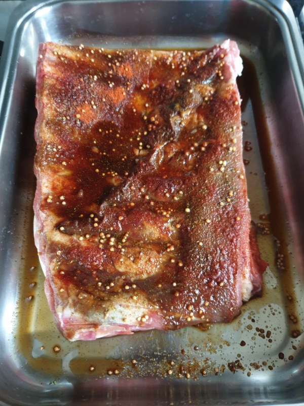 Il giorno dopo, trasferire le costine di maiale in una teglia da forno.
