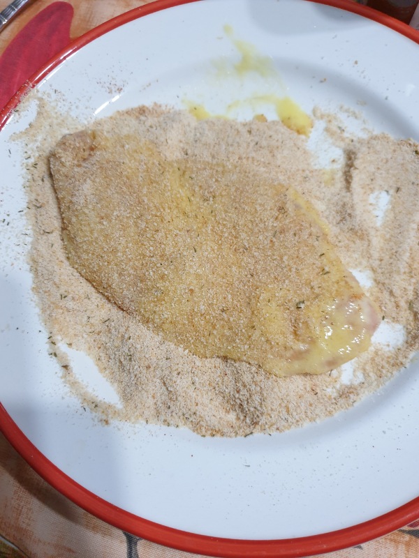 Ripetere il procedimento per tutte le fette di pollo: si otterranno 4 cotolette di pollo impanate.