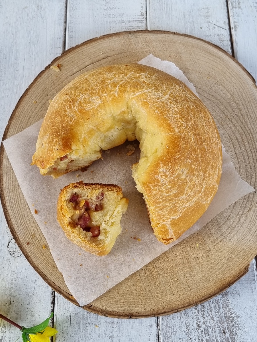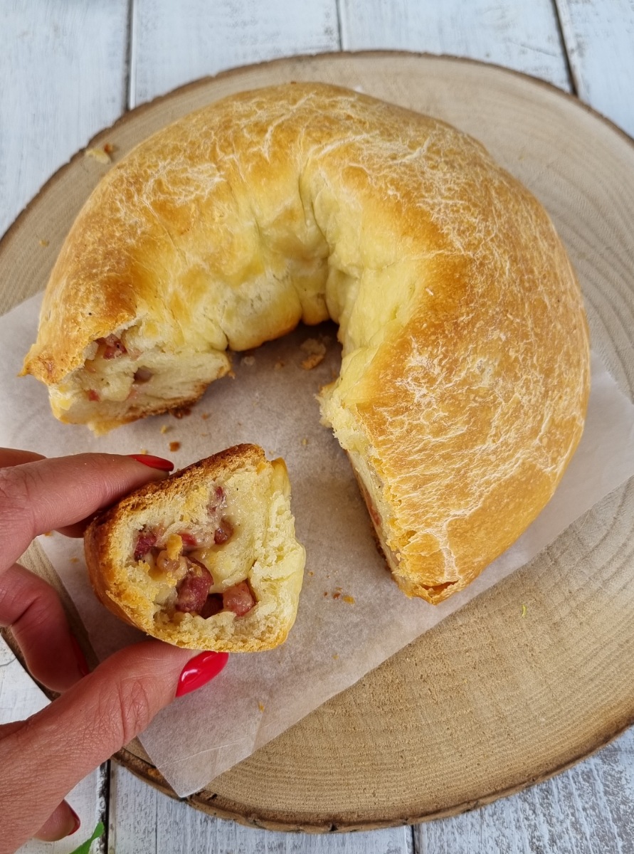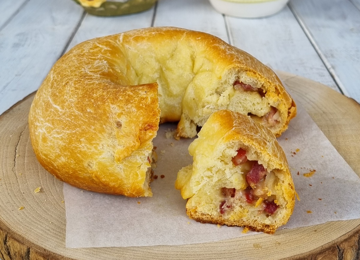 Chiudere ad anello il rotolo farcito in modo da ottenere una ciambella.