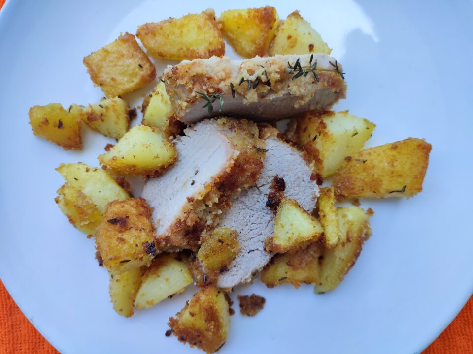 Quando preparo questo secondo piatto, so già che sarà un successo, la carne del filetto è sempre gustosa e le patate croccanti al forno arricchite con del pane grattugiato con delle erbe aromatiche (rosmarino, timo, salvia, prezzemolo) diventano ancora più gustose e golose.