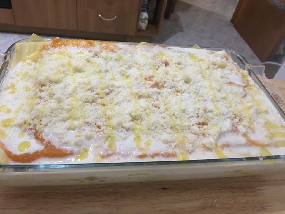 Prendere la mozzarella e la scamorza e tritarla nel Bimby o in un Mixer, così da ottenere il classico formaggio per pizza. Ora abbiamo tutti gli ingredienti e il gioco è fatto, basta comporla: sul fondo della teglia mettere un filo d’olio, adagiare la pasta, mettere la crema di zucca, lo speck, la besciamella, i formaggi tritati (mozzarella e scamorza) e una spolverata di parmigiano. Ricominciare con la pasta e portare a termine gli ingredienti.
