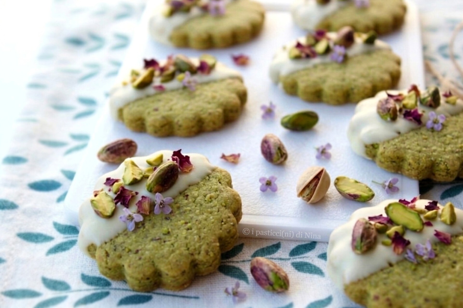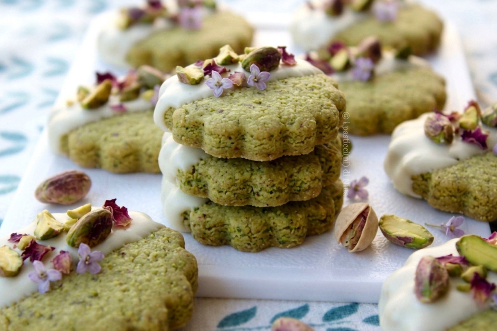 I biscotti al pistacchio sono dei dolcetti friabili e profumati che si sciolgono in bocca e sono decorati con cioccolato bianco. Il bello è che sono semplici ma sembrano usciti da una pasticceria. Uno di quei dolcetti che “tanto ne mangio uno” e poi improvvisamente la teglia è vuota. Sono Ideali per la colazione, la merenda o da servire con il caffè, ma possono essere anche una splendida idea regalo fatta in casa. Si conservano in una scatola di latta, resteranno fragranti per diversi giorni. Perfetti anche da regalare, magari avvolti in carta trasparente con un nastro elegante. A seguire, vediamo insieme cosa occorre per preparare i nostri deliziosi biscotti al pistacchio con cioccolato bianco: