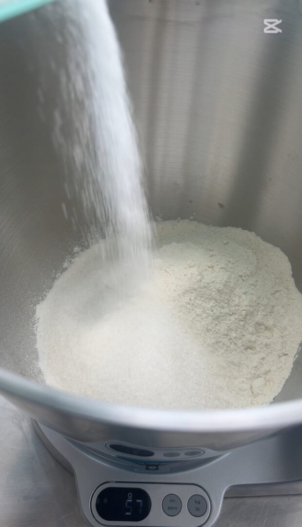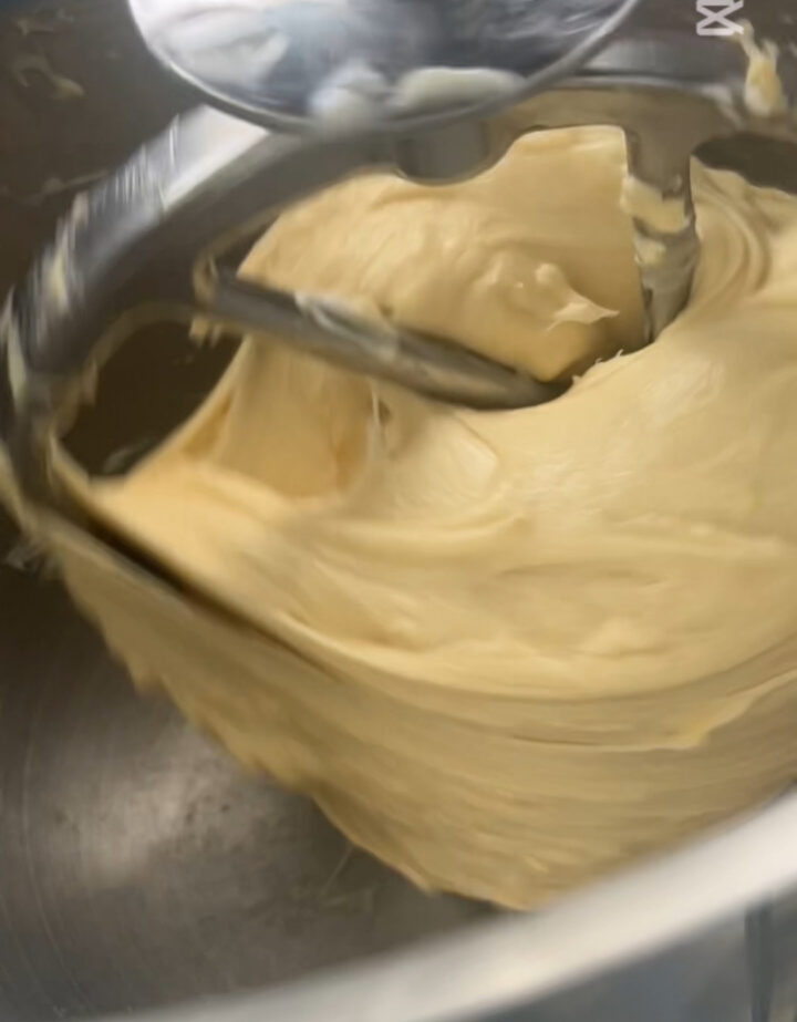 Inserire il secondo pezzo di burro quando il primo è stato ben assorbito dall’impasto e continuare fino a terminarlo e le pareti della planetaria risultano pulite. Mettere in coppa a lievitare per due ore, coperto con canovaccio o pellicola.