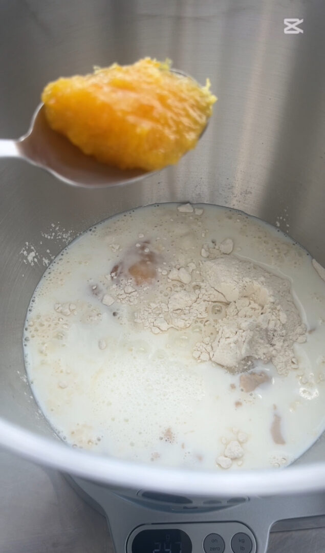 Quando inizia ad incordarsi l’impasto al gancio inserire poco alla volta il burro morbido