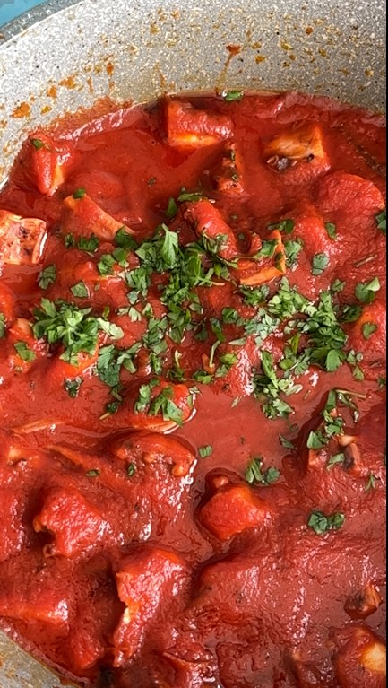 Aggiungere il prezzemolo e servire la nostra pasta con sugo di tentacoli di totano.