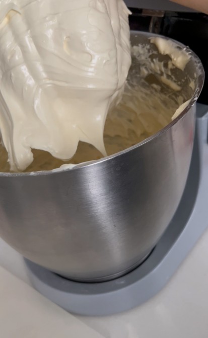 Nel frattempo montare la panna a neve ed unirla con movimenti lenti dal basso verso l’alto alla crema pasticciera.