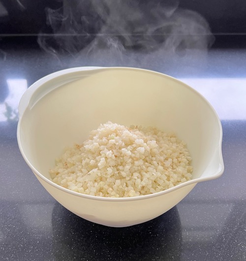 Per il riso di cavolo: segui questo procedimento per realizzare il tuo riso di cavolo. Cuoci in padella per alcuni minuti.