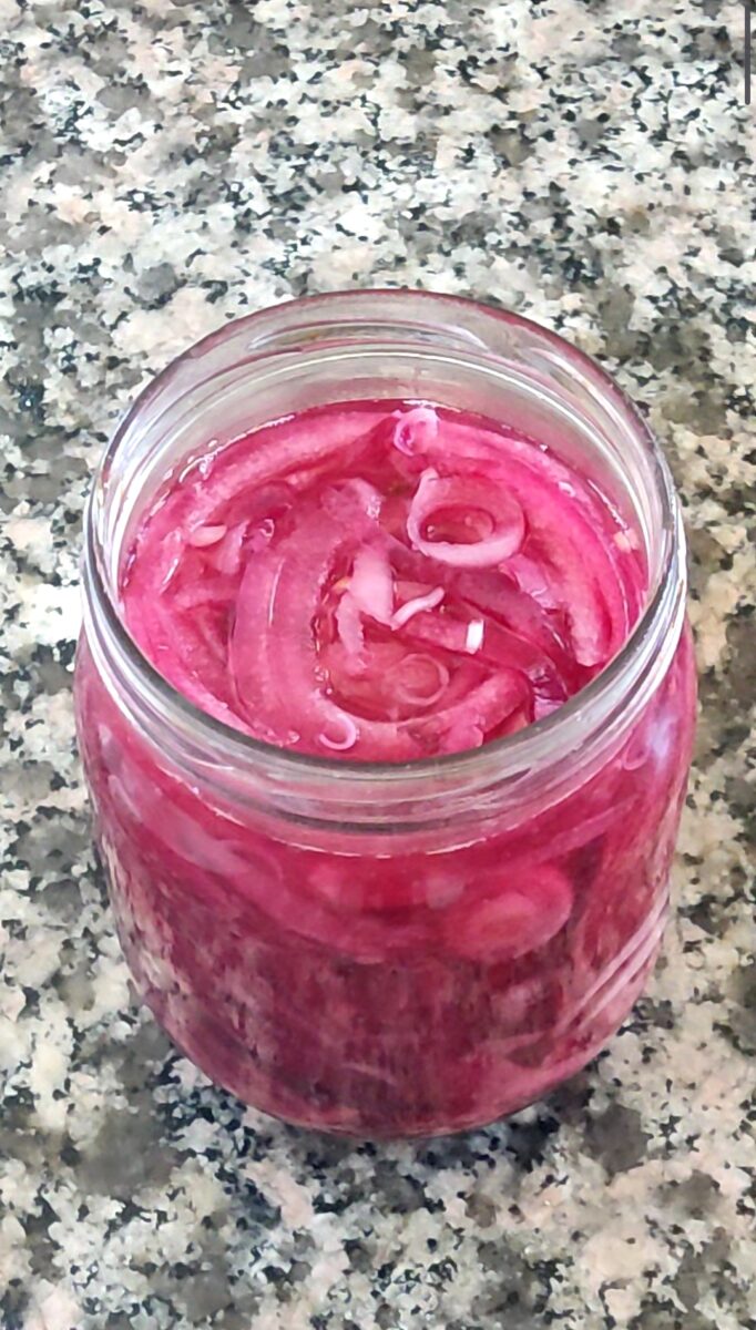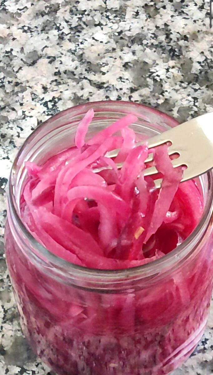 Cipolle rosse marinate pronte in pochi minuti. Non so voi ma io ho un debole per le cipolle, proprio come le CIPOLLE RIPIENE o la ZUPPA DI CIPOLLE. Le adopero tantissimo in cucina, molto più dell’aglio o dello scalogno. Oggi voglio regalarvi la ricetta più semplice e veloce per preparare un delizioso contorno con le cipolle. Solo cipolle rosse e pochissimi altri ingredienti ed ecco un vostro vasetto di Cipolle marinate da conservare in frigo per accompagnare tutti i vostri piatti. Sono tenerissime e gustose, io le accompagno alla carne, ma anche al pesce. Provatele anche in un panino con hamburger e sarà amore al primo morso. E con le cipolle non perdete anche la ricetta delle CIPOLLE AL FORNO CON FORMAGGIO e la ricetta delle FRITTELLE DI CIPOLLE DI TROPEA. In frigo si conservano per 2-3 settimane, ma vi assicuro che non dureranno tanto… sono così buone che spariscono in un battibaleno! Le cipolle marinate sono quel tocco magico in frigo: coloratissime, croccanti e perfette per sgrassare un tagliere di salumi e formaggi, arricchire un’insalata, rendere speciale un semplice hamburger e anche per farcire la pizza! Corriamo allora in cucina e prepariamo insieme delle irresistibili Cipolle in agrodolce