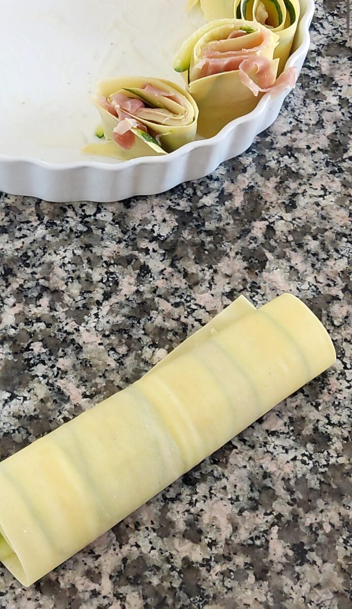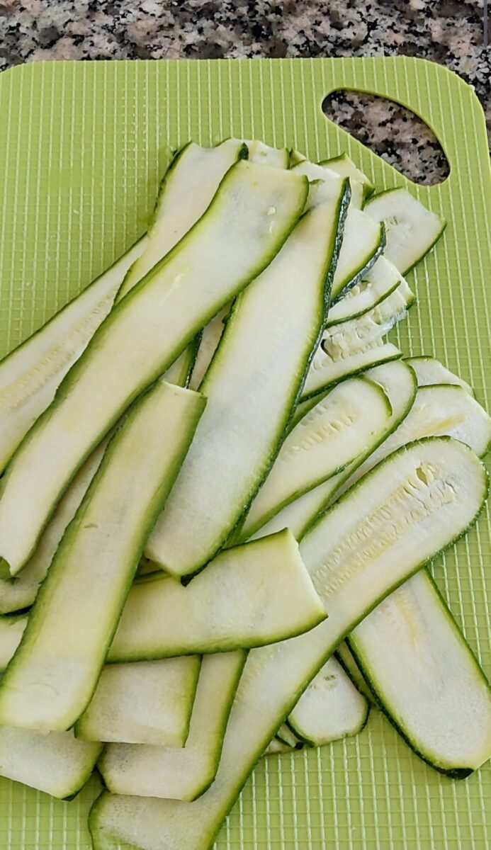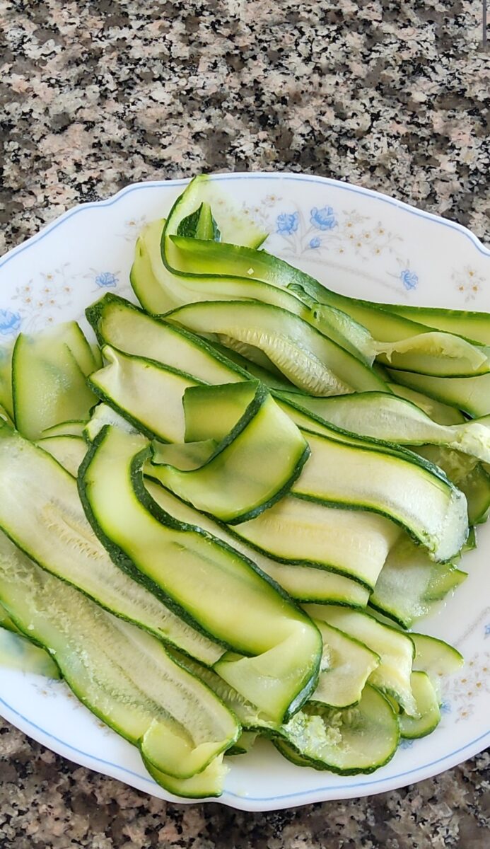 Fate cuocere le zucchine in una pentola con acqua bollente per 2-3 minuti. Devono solo ammorbidirsi. Scolatele e lasciatele raffreddare.