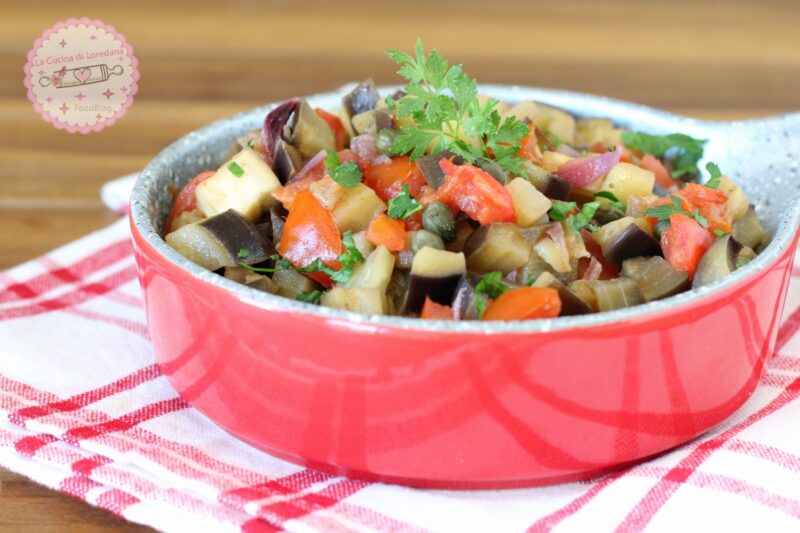 Io preferisco lasciarla. La buccia della melanzana non solo dà un bellissimo tocco di colore viola al piatto (che sta d’incanto con il rosso dei pomodori), ma contiene anche tante proprietà e aiuta il cubetto a non sfaldarsi troppo in cottura. Assicuratevi solo che la buccia sia ben tesa e lucida al momento dell’acquisto