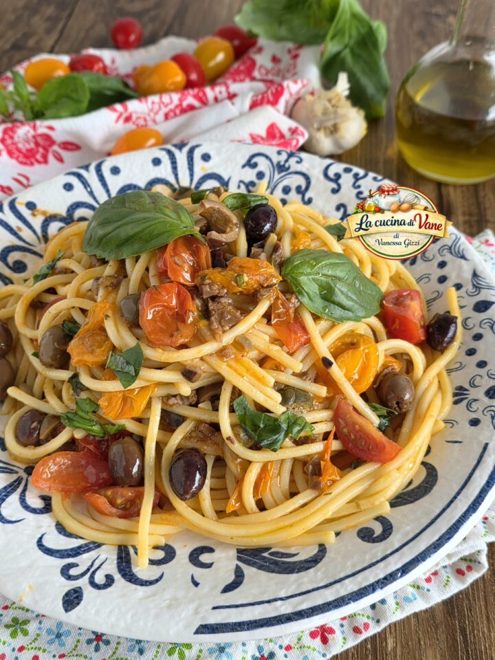 Arricchiti con olive, capperi e basilico fresco, questi spaghetti diventano cremosi e irresistibili, ideali per un pranzo in famiglia o una cena estiva leggera ma gustosa. Una ricetta facile da preparare, pronta in pochi minuti, che profuma di casa e di tradizione italiana.
