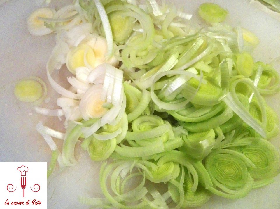 Lavate e tagliate a rondelle un porro evitando l’estremità superiore. Sbollentatelo in acqua bollente e salata per tre minuti, quindi scolatelo e fatelo raffreddare. Nel frattempo tagliate la mozzarella a cubetti.