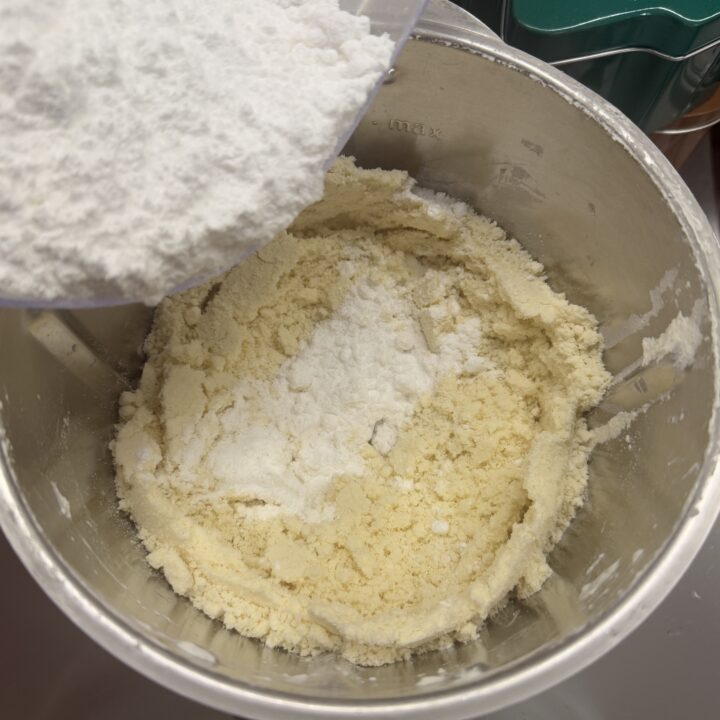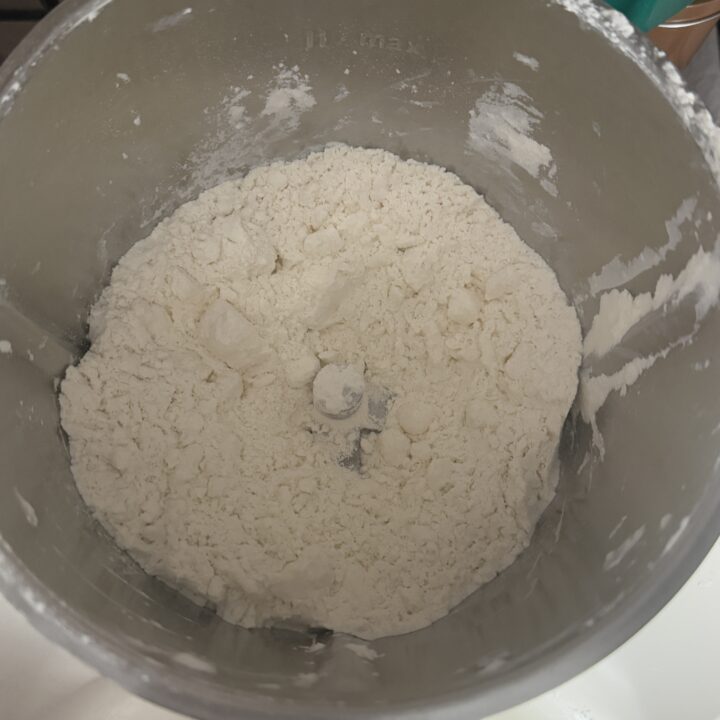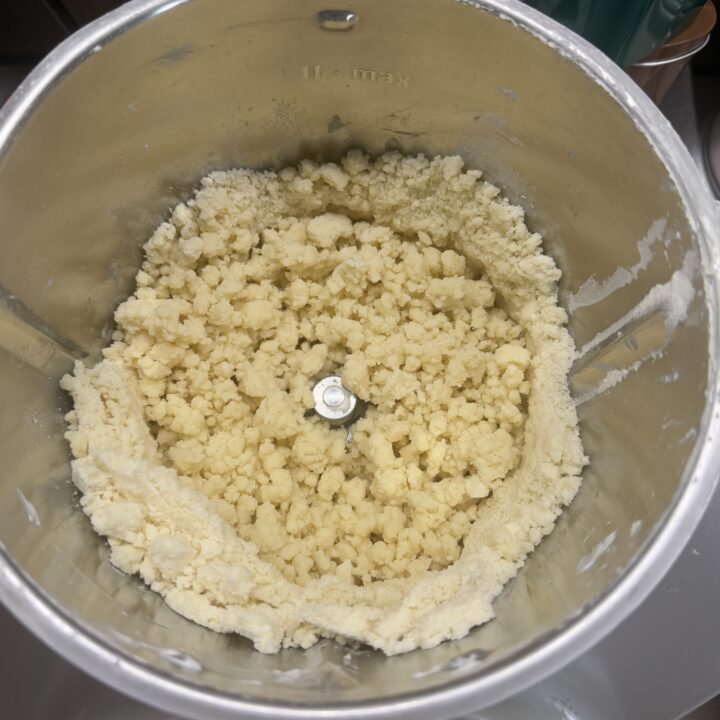 Aggiungete il burro freddo a pezzetti e frullate per qualche secondo fino ad avere un composto “sabbiato”. Se la preparate a mano, lavoratela velocemente con la punta delle dita per non scaldare troppo l’impasto.