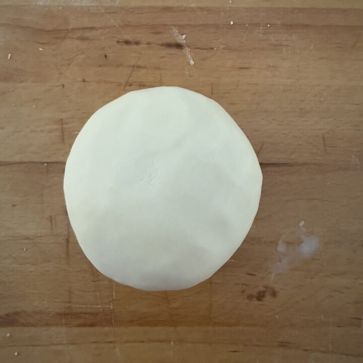 Compattate la pasta frolla con le mani, lavorandola fino ad ottenere un panetto sodo e liscio.