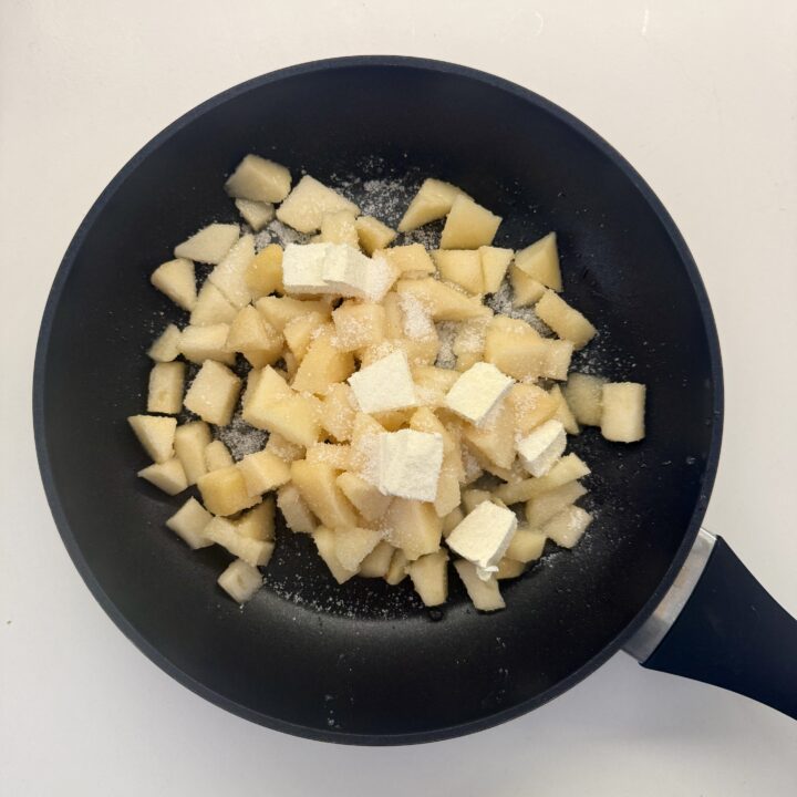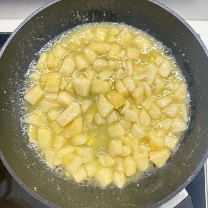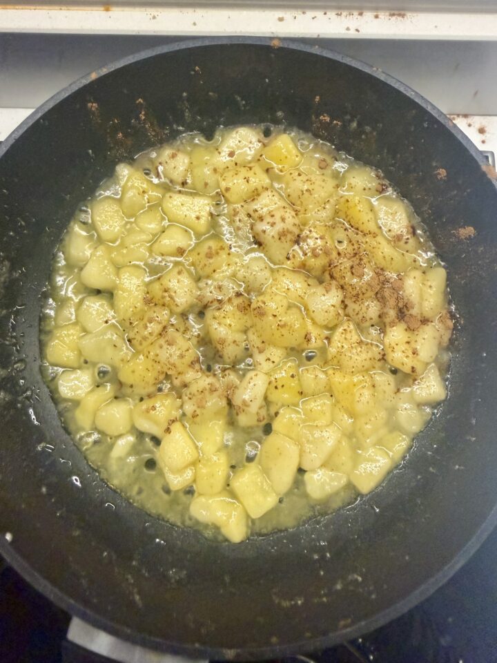 Aggiungete anche un po’ di cannella a piacere e fate asciugare il liquido che si formerà sul fondo della padella. Lasciate raffreddare.