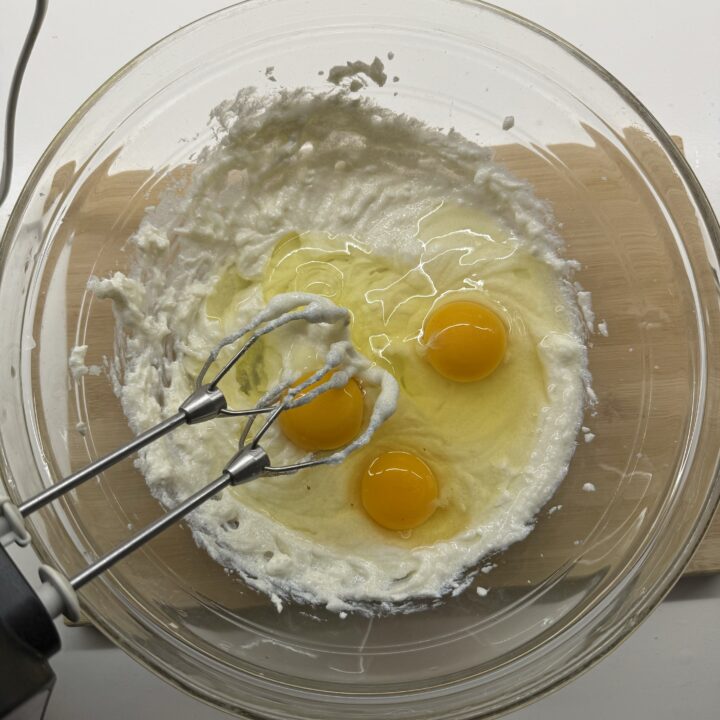 Aggiungete le uova e lavorate ancora con le fruste fino ad ottenere un composto omogeneo.