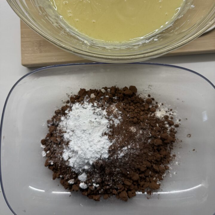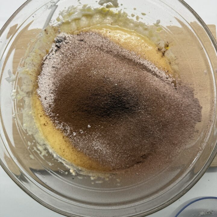 Unite anche le polveri setacciate (farina, cacao, lievito e vanillina): 1 min vel 3-4.