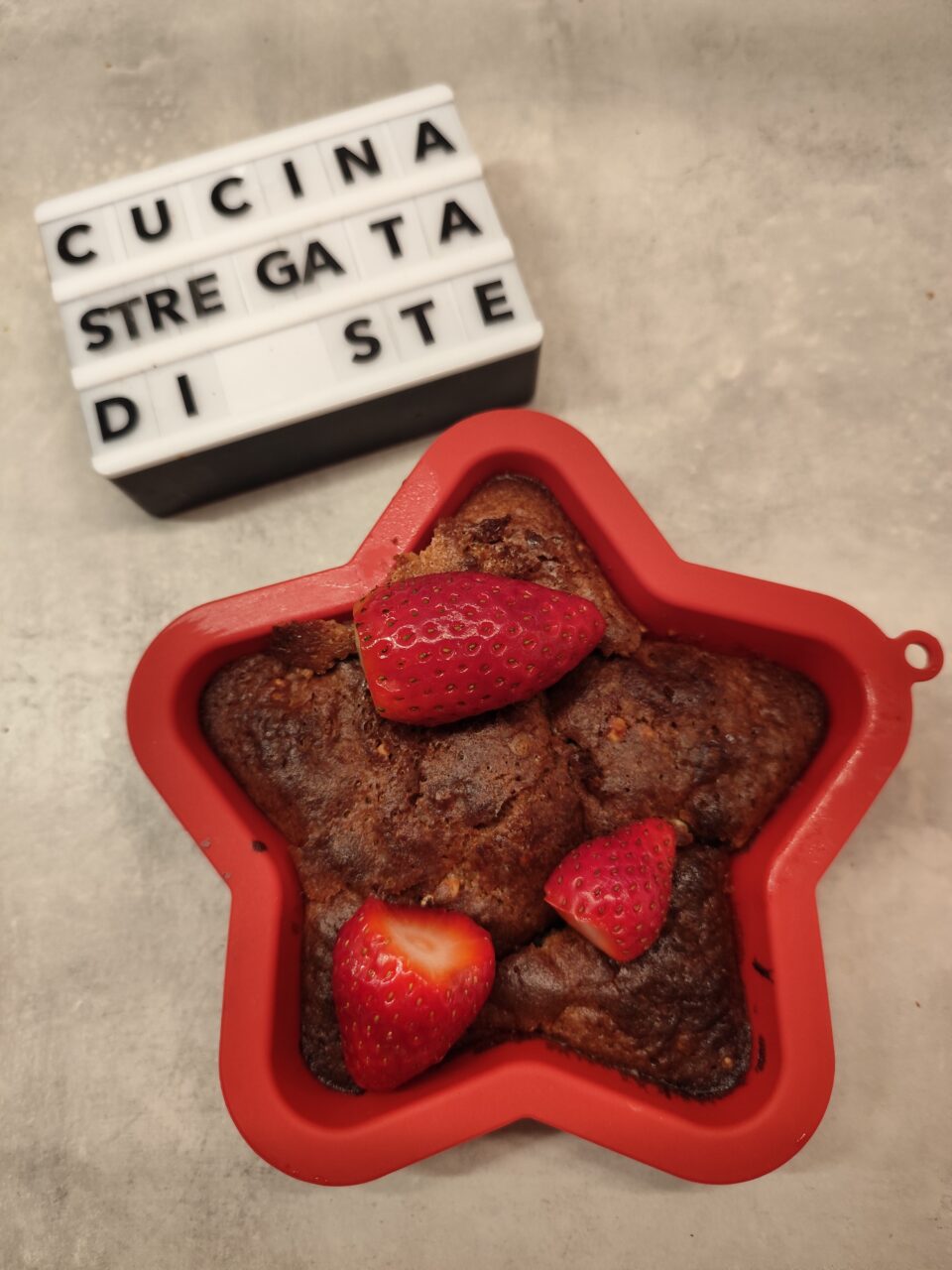 Versa in una piccola teglia, aggiungi le fragole a pezzi sopra.