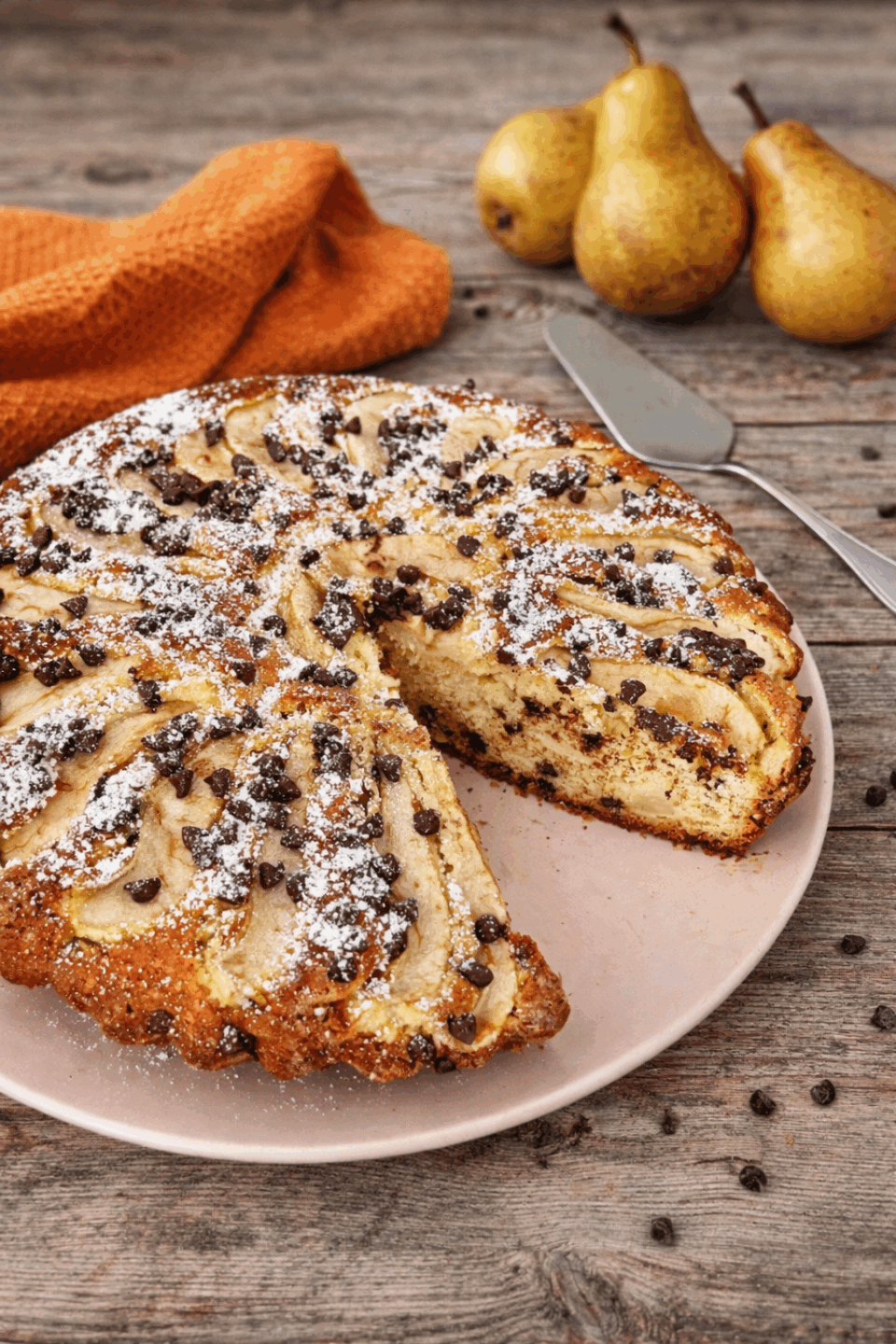 Questa torta è una delizia: il gusto amaro del cioccolato fondente si unisce con la dolcezza delle pere e questo piacerà anche ai palati più raffinati!