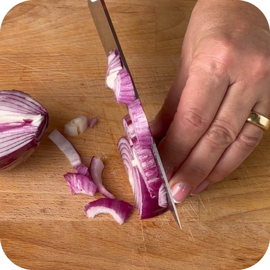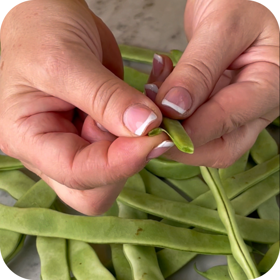 Per prima cosa, togliamo il picciolo ai fagiolini corallo ma non la codina perché è comunque buona da mangiare. Mettiamoli in ammollo per qualche minuto e poi sciacquiamoli sotto l’acqua corrente, per togliere ogni eventuale residuo di terra. In fine dopo aver pulito una cipolla rossa, perché più dolce, facciamola a pezzetti.