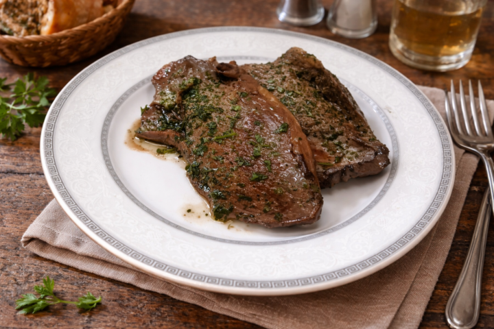 Cuore di vitello trifolato un secondo piatto particolare a base di frattaglie, cotte in padella e condite con prezzemolo e aglio.