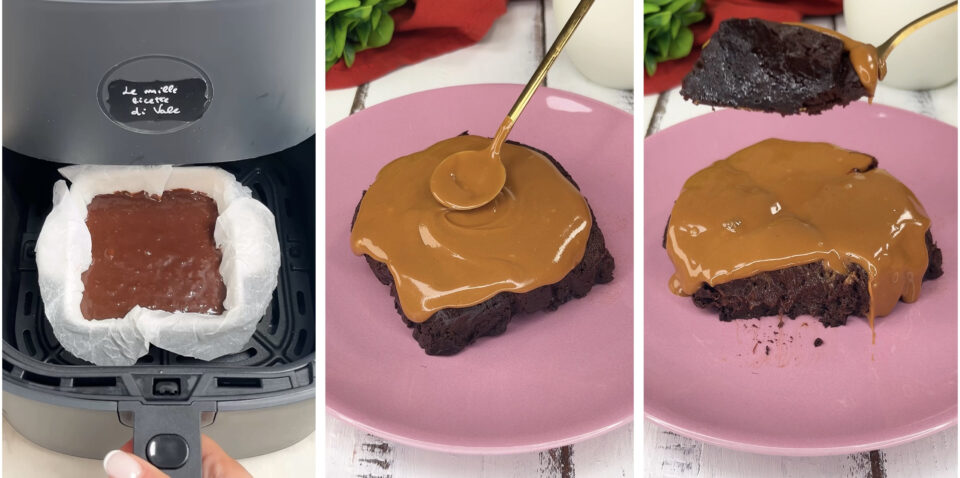 La ricetta dei brownies alla bana e cacao si prepara in 5 minuti, e poi giusto il tempo della cottura. Potete infatti scegliere di cuocerli in friggitrice ad aria, che permetterà una cottura molto veloce, oppure in forno classico aumentando i gradi e tempi. Sotto trovate entrambe le indicazioni in base al vostro metodo di cottura preferito. Una cosa è certa: una volta provati questi brownies, li farete sempre così!