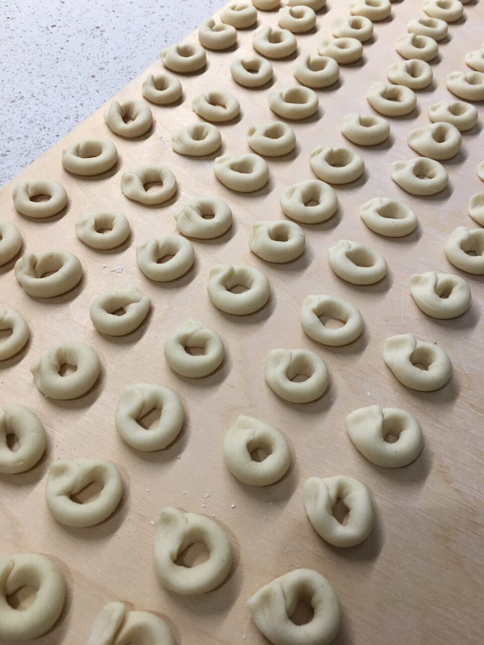 2️⃣ Prelevate una parte di impasto per volta, formate un serpentello, tagliate tanti pezzetti da 4-5 cm e chiudeteli ad anellino.
