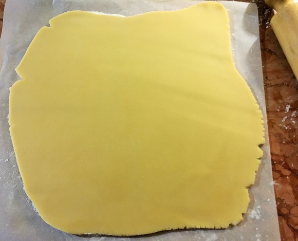 Trascorse le due ore in frigo, dividete in due l’impasto (uno più grande dell’altro, per i bordi) e stendete la frolla NON troppo spessa.