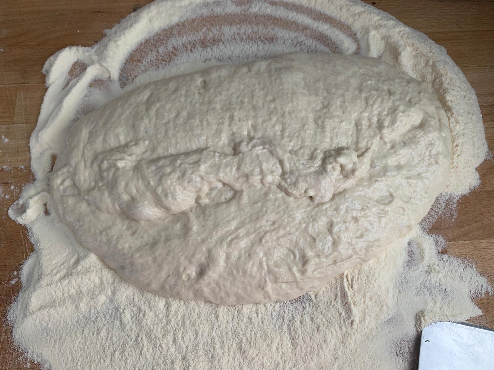 Impastate a mano o con una planetaria, per un paio di minuti. Otterrete un impasto appiccicoso, non preoccupatevi. Coprite la ciotola con un coperchio e fate lievitare per 12 ore, fuori dal frigorifero.