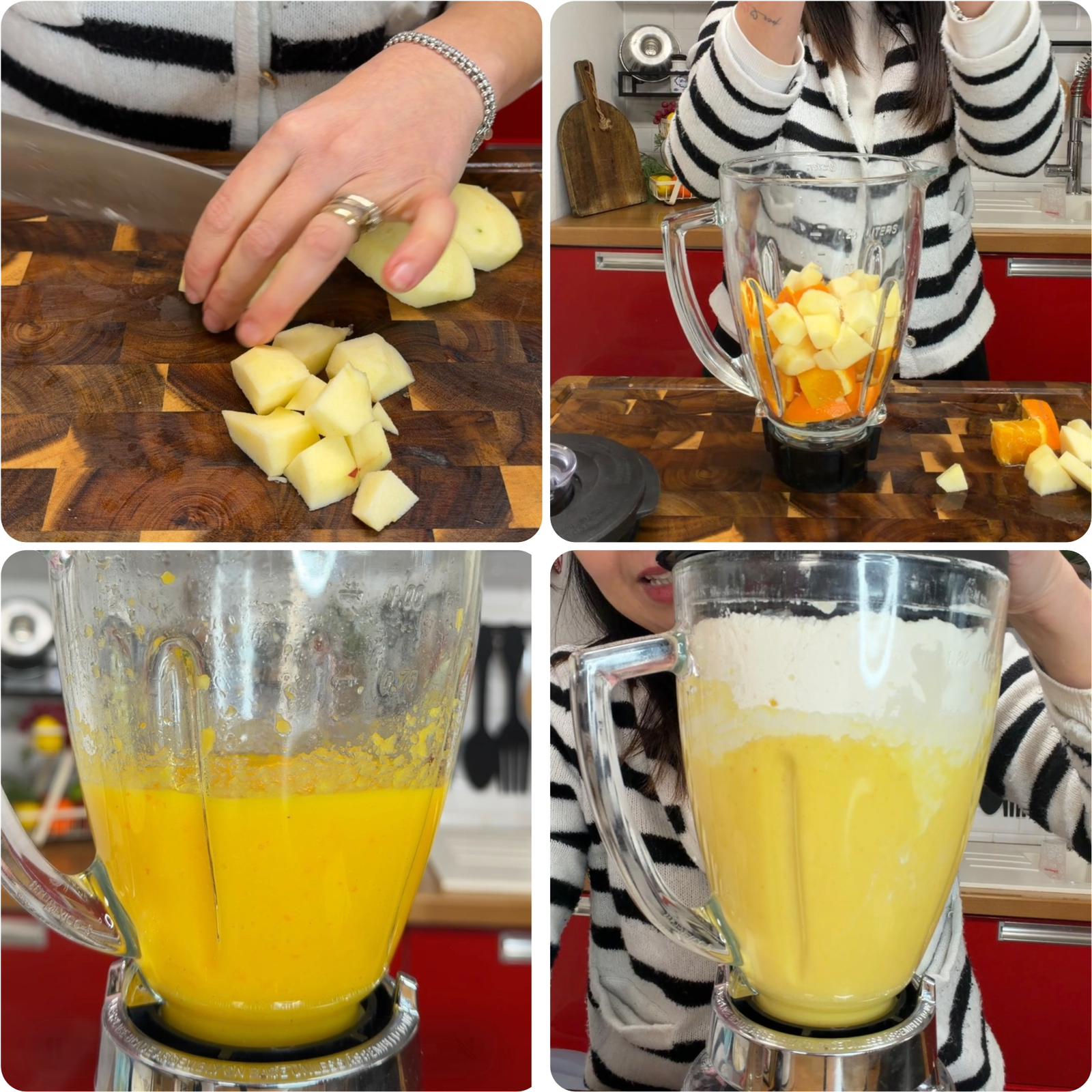 La preparazione è davvero facilissima: si frullano una mela e un’arancia intera con uova, acqua, olio, zucchero e farina, ottenendo un impasto liscio e profumato. È importante utilizzare arance non trattate, meglio se di qualità Navel, dolci e succose, e mele rosse o gialle.