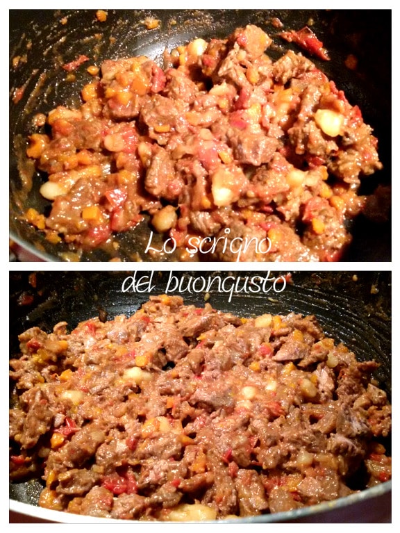 A questo punto non ci resta che coprire la padella e lasciare cuocere a fuoco basso per circa 1 ora e ½ mescolando di tanto in tanto.