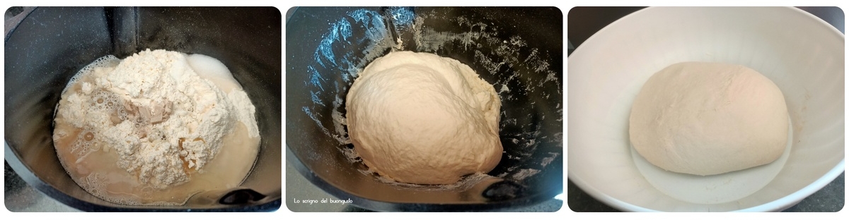 L’impasto si può fare a mano (con un po’ di olio di gomito) oppure con l’impastatrice.