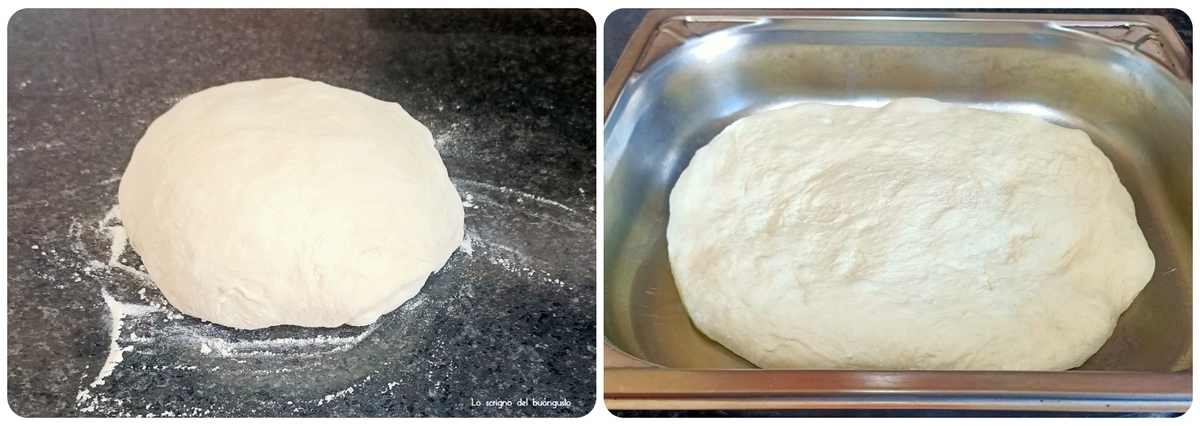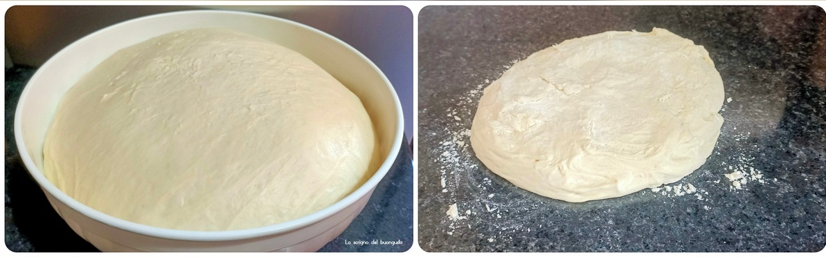 Trascorso il tempo, riprendere l’impasto, trasferirlo su un piano di lavoro….