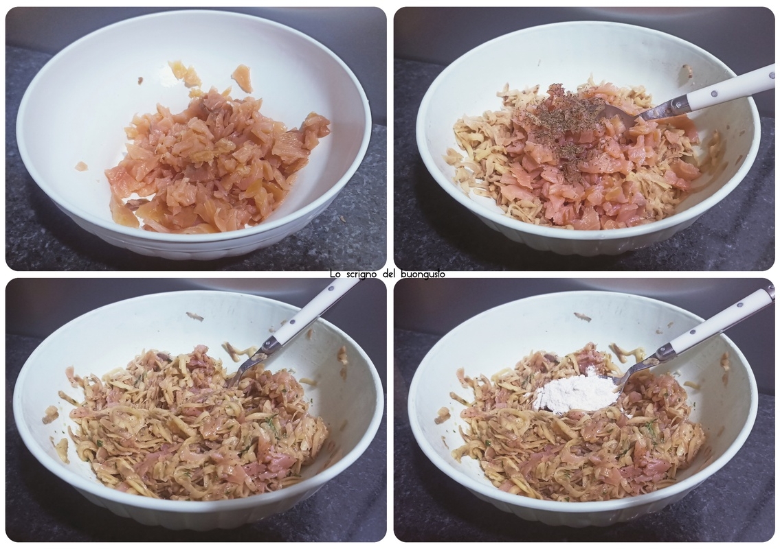 Preparazione delle Frittelle di patate e salmone