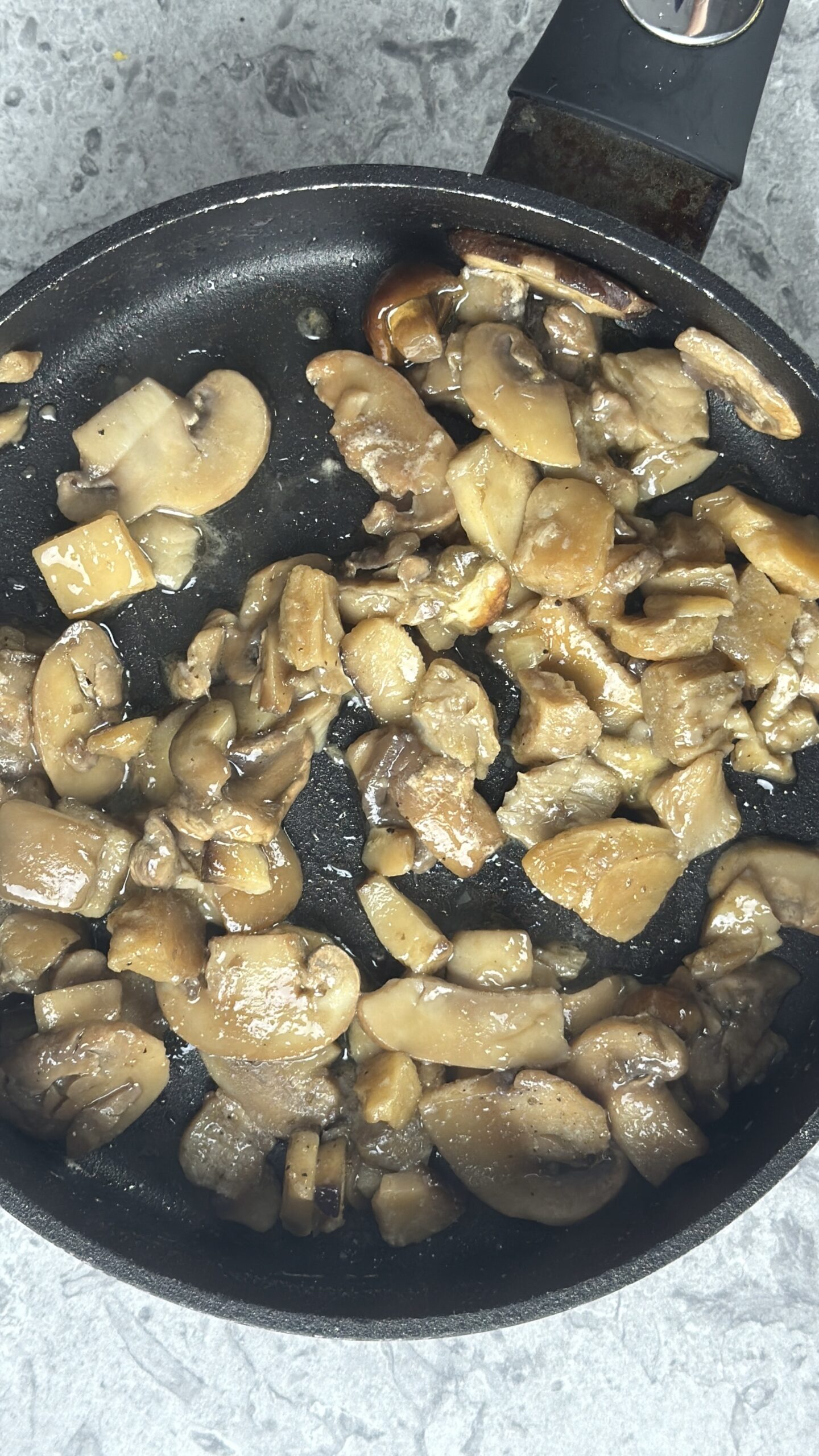 Togli aglio e salvia e metti dentro i funghi: io ho utilizzato quelli surgelati (un misto con porcini) ma se preferisci usali freschi.
